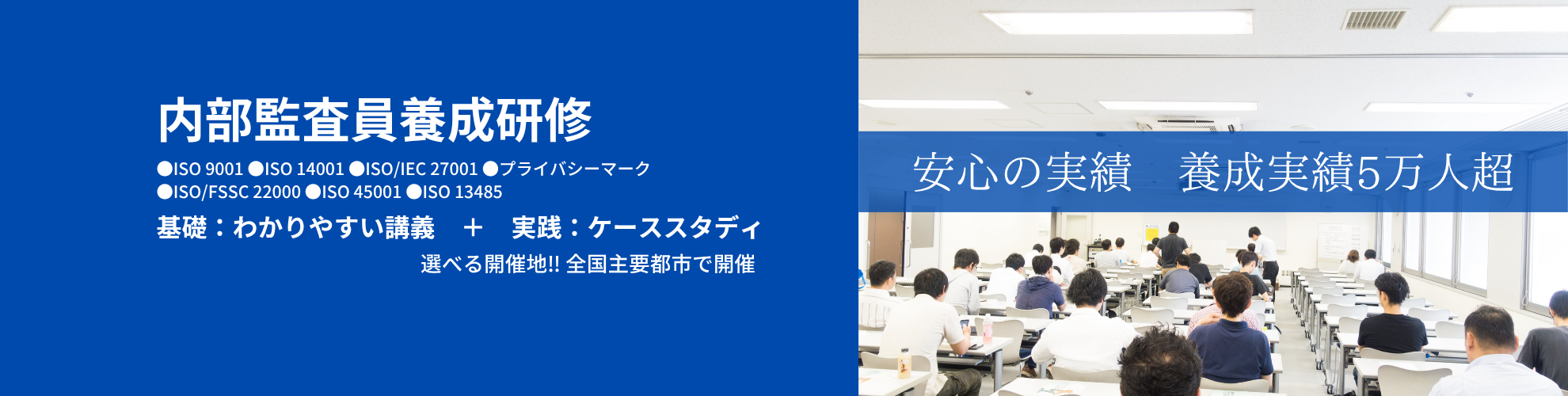 | 2026-05-12 | ISO 9001:2015内部監査員養成研修 2日コース | 大阪 | 空席有り |